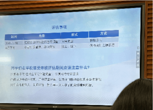 会议伊始,李艳老师向同学们介绍了本科教育教学审核评估的具体开展时间。她指出,此次评估将从3月中下旬正式启动,直至4月下旬圆满结束。期间,将以问卷调查、专家线上和线下听课等多种方式,对本科教育教学进行全面、细致的考察。
