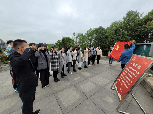 敬献花篮之后,在柯小君副书记带领下,全体党员同志重温入党誓词,矢志坚守初心,履行党员义务,发愤图强,承担新时代国家发展、民族复兴的时代责任。