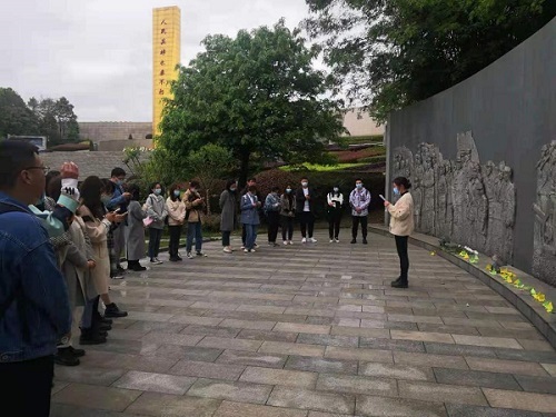 最后,大家怀着沉重的心情来到烈士墓园,一座座碑文记录着烈士们的生平,时间仿佛停止在了此刻,老师及同学们纷纷伫立默哀,献上手中的鲜花,向烈士们表达最诚挚的崇敬之情。