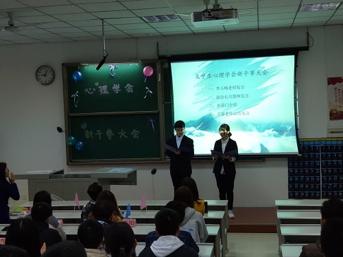 峨眉校区大学生心理学会,主持人为张博骞、甄伟梦。参会者除了午夜av