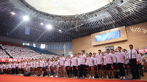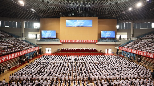 2019级研究生开学典礼在犀浦校区飞碟体育馆召开。正值新中国成立七十周年之际,典礼现场播放了献礼短片《为祖国点赞》,4000多名研究生身着统一的文化衫,在午夜av