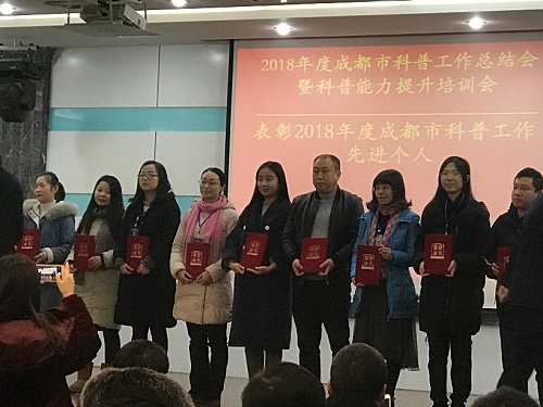 唐静老师获得了“2018年度成都市科普工作先进个人”的表彰。