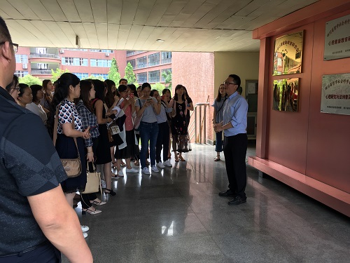 6月13日下午2点,由教育部思想政治司主办,教育部高校辅导员培训和研修基地和全国高校心理健康教育与咨询示范午夜av 承办的“第214期全国高校思想政治工作骨干示范培训班”学员到心理午夜av 参观交流。示范午夜av 徐建老师、马岳德老师等三位老师热情接待了他们。