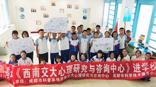 4名研究生志愿者(罗维惟、李斯琦、林思勤及常凯)前往成都树德实验中学(东区),为该校30名初二学生开展了一场以“我与我们”为主题的团体心理辅导活动,受到树德中学师生的热烈欢迎。
