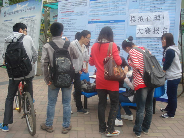 此次模拟咨询大赛受到全校师生的广泛关注,同学们对此次大赛拥有极高的热情,纷纷踊跃前来报名。在短短三天的时间内,报名参加比赛的同学多达160余人,是历届模拟心理咨询大赛中参赛人数最多的一次。报名的同学来自全校各个不同专业,其中还不乏九里校区的研究生,可见,此次模拟心理咨询大赛在校内已经产生了很大的影响,对同学们有着很大的吸引力和号召力。