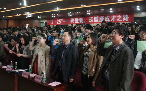 应用心理学专业2012级学生在优雅的民乐声中表演了“3·25 ”健康三字经,学生代表还带领所有参加此次活动的师生了进行了健康宣誓。最后,在李光华委员宣布下,2013年四川高校“3·25大学生心理健康教育”活动正式启动。