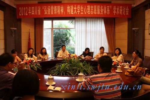 经过为期一天紧张而充实的学术讲座、小组交流、大会总结,2012四川省心理健康教育研究会圆满结束。希望参会的广大师生能把“弘扬雷锋精神 ,构建大学生心理志愿服务体系”这一会议的宗旨贯彻落实,发扬光大,促进四川省心理健康教育蓬勃发展。