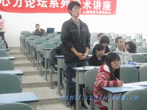 在讲座中,老师不仅教给我们心理学方面的知识,还教我们如何从人的行为和面貌认识了解这个人。同学们也积极发言,踊跃发表自己的意见,并用老师讲方法去分析人。在学习如何认识和理解别人的同时,也学会了如何用“家谱图”和“人际蛛网”来更好的了解自己。
