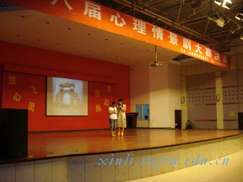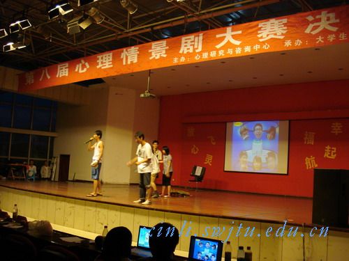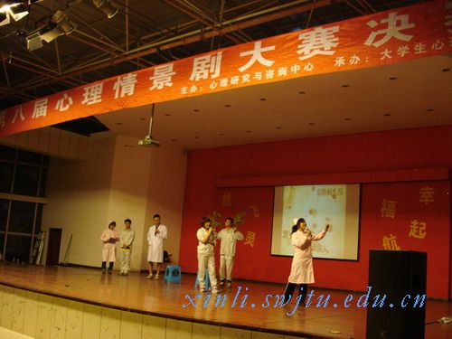 主办、大学生心理学会承办的主题为“放飞心灵,幸福起航”的第八届心理情景剧大赛决赛在一食堂三楼如期举行。