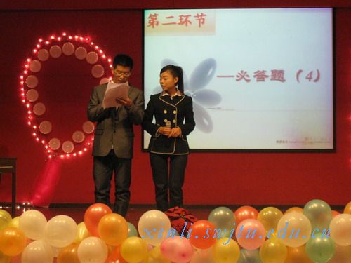 比赛一开始就掀起了高潮。各队纷纷上台展示各队自导自演的节目。悠扬的古筝、激昂的歌曲、劲爆的舞蹈、精美的PPT……无一不体现了同学们的乐观进取,勇于创新精神,令在场的观众而目一新。随后的抢答题环节则充分考察队员的知识面、反应能力和表达能力。其中表现最出色的当属“I S gaga”队伍。在队长的带领下该获得了较高分数。最后一个项目的比赛则充分体现了本次大赛
