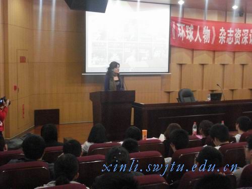 为同学们做讲座,并开玩笑说欢迎大家到《环球人物》来工作。同学们也都觉得获益匪浅,意犹未尽。