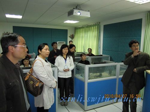 参观过程中,宁教授给大家详细地介绍了各个实验室的功能及使用方法。在安宁舒心的生物反馈团体心理训练实验室中,西华师范大学研究生学院周处长和内江职业技术学院谢处长积极参加了一项放松训练,这套先进的训练设备和这种训练方式让所有来访者大开眼界,赞不绝口。