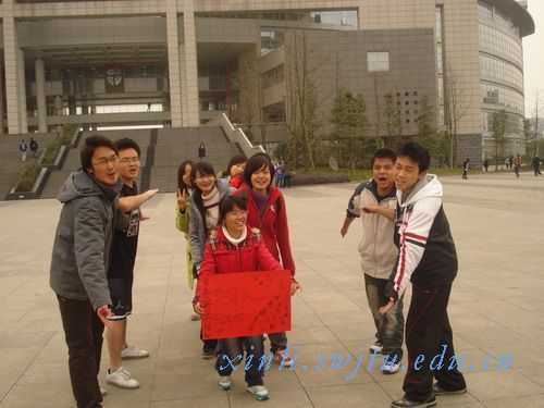 在四个主持人的安排下,活动紧张有序的进行。首先进行的是“两人三足”,在活动中每组派出三人组成一队,将相邻的两人脚绑在一起,进行接力赛。该活动进行得异常激烈,一番角逐之后,“玖玖超人”队以优异的成绩夺魁,他们的精彩表现赢得了阵阵掌声。
