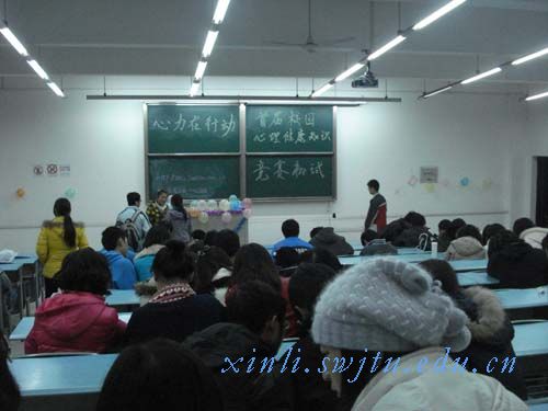 主办,心力网记者团承办的首届校园心理健康知识竞赛——“心力在行动”初赛在X2418 、X2316、 X2419同时进行。初赛以笔试答题为主要形式,考察同学们对大学生心理健康知识的了解和团队默契。