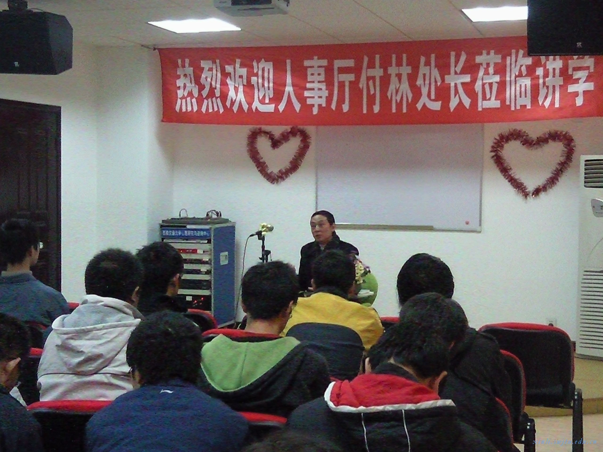 进入大学,同学们都在专业知识的海洋里拼搏,希望能有个好的毕业前景。然而,如何正确认识、分析专业的发展趋势与未来的就业形势?四川省人事厅付林处长于2009年11月19日下午3:30在5229给09级心理专业的同学做了一场精彩的讲座。