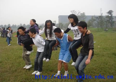 在活动开始之前何老师先带领大家做了一些热身运动,使身体放松舒展,然后把成员分为四个队,要求每个队选出队长,制定队名。经过一番商讨,“梦之队”、“SHOU TIME”、“十全十美”、“闪灵”四个队宣告成立,他们将进行“环环相套”、“盲行”、“四足蜈蚣”三个游戏。“环环相套”需要每组排成一队,队员将左手穿过双腿间,向后握住背后同学的右手,然后依次穿过三个呼拉圈。开始各组成员都有一点儿拘束,但随着活动的展开,各组成员受到了热闹氛围的感染,变得积极活跃起来。最终“闪灵”队最先完成了这一任务。在“盲行”中,每隔一个队员蒙住眼睛扮演盲人,未蒙住眼睛的队员扮演哑人,排成一列的各队按照事先设定路线走完全程,一轮下来并不是特别顺利,他们交流分享了经验,盲人和哑人交换了角色进行了第二轮,这一次他们互相帮助配合,在沟通受到限制的情况下很顺利地完成了第二轮比拼。“四足蜈蚣”则要求每队派出七个成员,作为一个整体穿越场地,但是每组只能有四个点接触地面。经过一番思考,“梦之队”充分发挥力量优势,四个人抬着三个人“走”完全场,夺得第一,接下来其他队也以自己独特的方式完成任务。在每个部分结束之后,每队都进行了小结,并积极思考新的方法,每个人都十分踊跃地表达了自己的观点和看法。最后何老师对这次活动进行了总结,她指出在一个团队中只有每个人都积极地配合队友,努力参与到团队中才能把团队的力量发挥到最大。