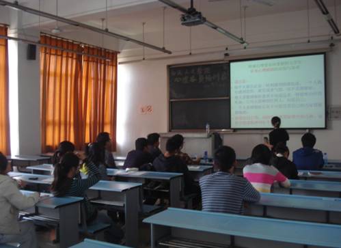 讲座以代表两种截然不同生活方式的两幅图片开始。一幅是给人阴霾感觉的波涛汹涌的的海面,一幅是给人柔和感觉的辽阔无穷的绿色草原。同学们自然选择轻快的后者。接着,高飞老师以两个大学生因感情受挫自杀的事例引出心理健康的话题,详细介绍了高校大学生心理健康的标准、班级心理委员应掌握的大学生常见心理障碍的识别与处理方法、发现问题或征兆后的处理办法及常用的急救处理办法,如触电急救、人工呼吸等。面对如此严肃的话题,整个过程中同学们都保持着郑重的神情,但当提到某些有心理障碍的同学的怪异行为时,也有同学发出不屑的笑声以表示不可理解。对此高飞老师郑重的告诉大家:“从刚才大家选择图片的结果知道,任何人都想过得好而不愿心里出现异常,行为脱离大众。但既然问题已经出现,作为心理委员的我们就要向职业人那样用一种感同身受的方式与他们交流,帮助他们解决困难。”听到老师的话,大家沉思片刻,纷纷感慨生命的脆弱,意识到维护生命和心理健康的重要性及心理委员肩负的责任与使命。