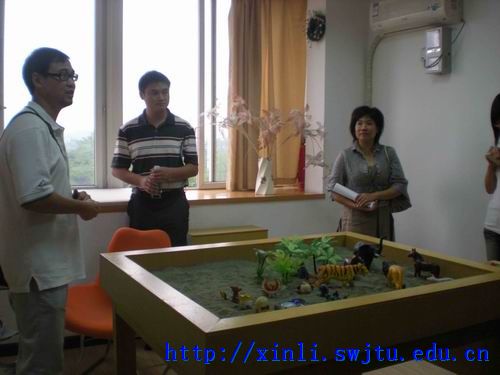 随后,老师们参观了心理动力实验室、情绪宣泄室与调节室、生物反馈团体心理心理训练。蒋老师为他们一一作了详细的介绍。在情绪宣泄与调节室,老师们还当场演练,亲身体验一番。论。”