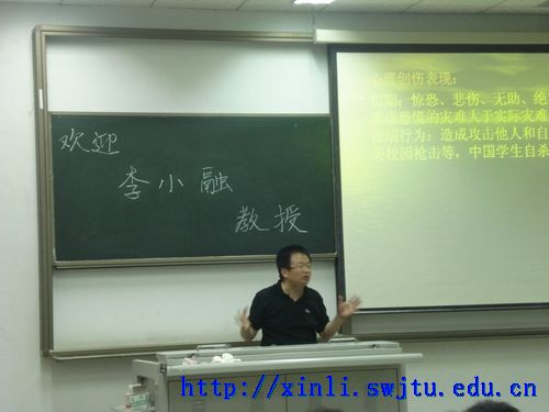 5月26日晚上七点半,在四川省心理学会理事长,中国心理学会理事, 四川省著名心理教育专家李小融教授在犀浦校区给我们带来了以“灾难心理与民众心理援助”的专题讲座。 李教授首先从灾难的现象及特征入手,分析了传统灾难和现代灾难的相似和不同,让同学们更加清楚地认识了灾难的特征,从而为同学们更加深刻地理解今天的主题“灾难心理与民众心理援助”打下了基础。接着李教授讲了“对灾难心理创伤的分析及心理援助的涵义”,现代社会个人克服心理创伤的特点和表现,并总结出了心理援助应具有的特征。 接下来李教授分析了影响心理援助相关的社会因素,受灾民众情理援救的本质及方法。最后还提到了关注民众心理援助体系和制度建设,并希望通过本次专题讲座能帮助同学们更好的认识灾难心理和民从心理援助。 在整个讲座中,李老师以幽默的语言和生动的例证赢得了同学们的阵阵掌声,整个讲座在大家的热烈掌声中结束。