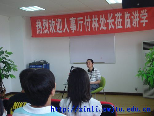 付林处长用一条富有哲理的短信开始了他的话题。付处长说,我们正处于一个伟大的时代,在这个时代中,我们有足够的空间去展示自己,表现自己。一个人的成就需要有一个良好的外部环境,但也不能缺少自身的努力。所以同学们首先就要学会如何掌握自己的时间,明确目标,并为之不懈努力;其次,人作为一种社会性动物不可避免地需要团队合作。如何进行很好的团队合作也是需要同学们掌握的一门很重要的学问……付处长用其自己的亲身经历以及在生活和工作中的经验,告诉同学们许多做人做事的道理,使同学们深受启发,受益匪浅。