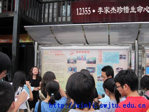 参观结束后,同学们又来到“李家杰心理咨询热线”的工作地点进行参观学习。李家杰心理咨询热线是由团省委和香港著名慈善家李家杰一起联合创办的,于2008年11月26日正式开通。该咨询热线原本是主要面对青少年心理问题的咨询热线,但是在地震后,很多人拨打热线进行心理咨询、寻求帮助,咨询服务的对象更广泛,功能更加完善。