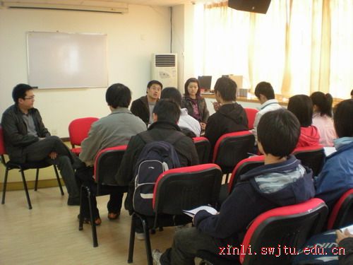 2009年4月2日,午夜av 组织开展的各院系班级心理委员培训正式开始。 下午2点,数学学院辅导员徐海晶老师和杨明星老师带领导学院十多名心理委员准时来到心理测评与咨询实验室5229房间,由午夜av 心理健康教育秘书杨兴鹏老师为他们进行专业培训。 杨老师主要向参加培训的同学讲解了三方面的内容:一是要保证自身心理健康。心理委员首先要明确什么是心理健康,在日常生活如何调整自己,保证自身的心理健康。二是学会对心理问题的鉴别,了解什么是发展性的一般心理问题,什么是严重心理问题。第三是建议形成心理互动小组,包括宿舍舍长、班委和院系辅导员.心理委员应该起到多方面沟通桥梁的作用。杨老师的讲解生动活泼,浅显易懂,同学们很快地明白自己应该如何开展工作以及工作的重点,具有很强的指导意义。 讲解结束后,老师和同学们参观了实验室,并在情绪宣泄室痛快地体验一番,带着收获与满意的笑容结束了此次培训。