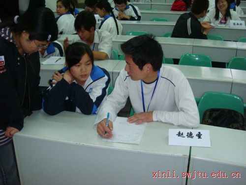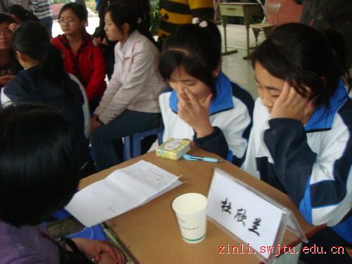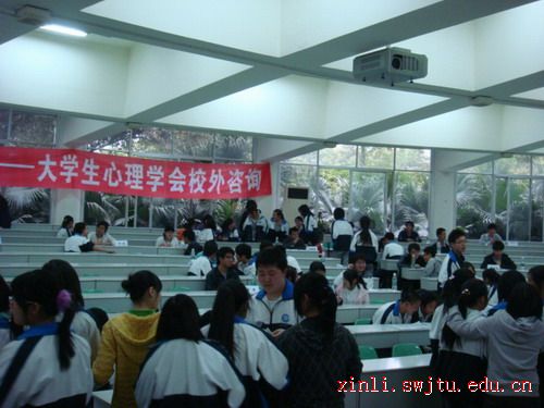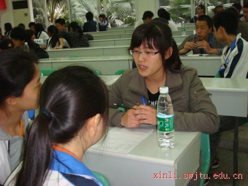 早早地,心学的同学们就在事先安排好的教室等待前来咨询的考生。一阵悦耳的铃声后,郫县一中的同学们纷纷从各个教室赶过来,教室里一下子热闹起来。有的两三人一起围住我们的咨询员热烈地讨论、交谈,有的则是单独与咨询员小声地交流。他们都把我们的咨询员同学当作大哥哥,大姐姐,知心朋友,向他们尽情地诉说学习生活中遇到的不快与愁苦。我们的咨询员同学用自己学到的心理学知识、高考的亲身经历,以及耐心的倾听、仔细的分析、朋友般的交谈,兄长般的关心,为考生们拨开了头顶的一片片乌云。