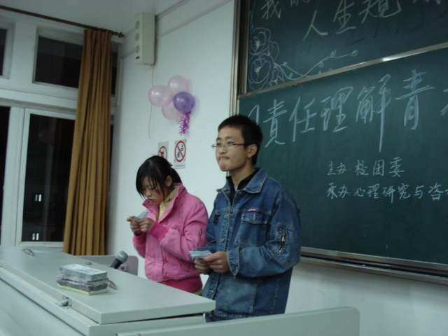 应用心理学专业的学生汇聚一堂,开展了一次以“青春与责任,我的人生规划”为主题的活动。本次活动旨在开拓大家的视野,启发大家对自我的思考,对自我进行准确的定位,尽早确立自己的人生规划。心理班的同学们对本次活动进行了细心的准备,在活动之前向全校同学发放了大量的调查问卷和宣传单,充分地了解了在校学生的人生规划状况。