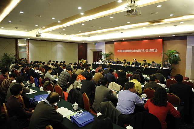 思想政治教育研究会召开2008年年会,会议主题为“改革开放30年四川高校思想政治教育理论探索与实践”。来自全省40余所高校120余名该领域的专家和领导出席了会议。研究会会长,电子科技大学党委书记胡树祥作2006年至2008年度研究会工作报告,四川省教育工委委员周光富,省委讲师团团长、省委宣传部理论处长王素到会并讲话。
