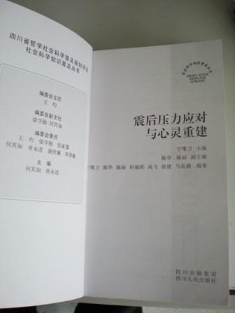 宁维卫教授主编的四川省哲学社会科学普及规划项目《震后压力应对与心灵重建》一书,由四川人民出版社出版。