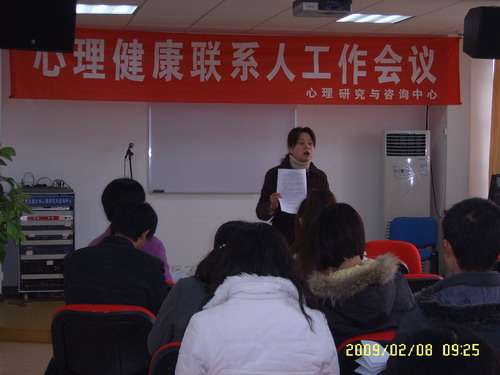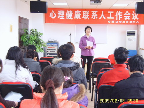 咨询室主任马淑琴老师主持的“心理健康联系人工作会议”在5229召开了。来自环境学院、机械学院、外语学院等十几个院系的关辅导员参加了此次会议。