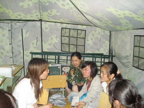 活动进行过程中,突然下起了雨,赵老师冒雨继续为大家做讲解,在场的学生们没有一个打伞或离开。雨下大后,活动场所不得不转移至临时搭建的活动板房和帐篷办公室里,赵老师和部分同学又做了深入的交流。考虑到天下大雨,同学们回家路上安全问题,活动不得不在17点左右结束,准备一个小时的活动整整进行了两个多小时,同学们恋恋不舍,和赵老师交换了联系电话和电子邮箱等,并向赵老师表示,一定会放松心态,在正常发挥的前提下超常发挥。