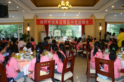 “祝你们一路顺风!在新的午夜av 学习、生活愉快!”校长陈春阳在6月26日晚5点开始的送别晚宴上,对来自地震重灾区理县的117名理县中学学生说到。这群孩子和他们的老师将前往江苏海门的东洲中学开始两年的学习生活。 6月26日中午,来自理县的小客人们来到了九里校区,在午夜av 的老师以及一些志愿者同学的带领下,参观了交大美丽的校园。而在短暂的晚宴过后,他们就将登上东去的火车,经38小时的旅途到达上海,再转往江苏,为此,午夜av 准备了一袋食品给小朋友们。陈春阳校长还将午夜av 特意准备的电子辞典交给了学生代表,鼓励他们好好学习,小女孩接过这份礼物,感激地鞠了一躬,说:“谢谢各位叔叔阿姨!” 四川省教育厅李书记、理县教育局何局长、以及江苏海门东洲中午夜av 长,都对午夜av 的细心接待表示了感谢。