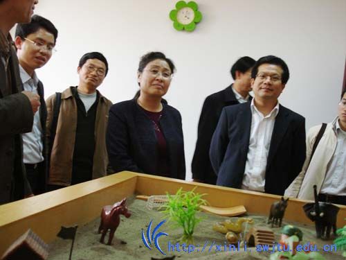 大学生心理咨询与测评实验室已率先成为国内专门用于心理健康教育的开放性、创新性、实践性的综合性实验室,并在大学生心理健康测评、心理咨询以及心理健康教育研究领域发挥了积极作用。江西省委教育工委史蓉蓉副书记以及四川省委教育工委周光富委员等领导就实验室在使用、研发和创新等方面的情况进行了了解。并现场对沙盘治疗的原理进行了细致了解。沙盘治疗作为一种心理疗法,是通过对图形、沙具、摆放的顺序以及在这过程中的相互引导,交流,达到发现其“原型意象”,指导于具体的心理危机干预和治疗的方法。午夜av