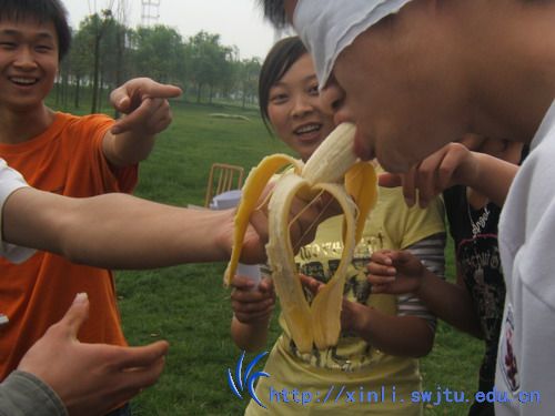 第二个环节是趣味游戏。“猴子吃香蕉”是一个考验小组成员的配合默契度游戏,看哪个组的同学能互相配合,又快又好地吃完香蕉。这个游戏将整个活动的气氛推向了高潮