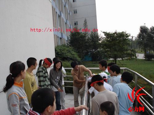 最后进行了有趣、刺激的盲人游戏。一部分人扮盲人,另外一部分人拌聋哑人,他们互相帮助,一起踏上征程。大家明白了交流的重要性,要善于表达,“盲人”需要把自身的感受表达出来。