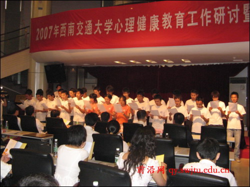 “丰产不等于丰收,大学生们成才的前提是心智健康。今天我们和成都市第四人民医院共同开通‘心理关怀绿色通道’,就是为了更好地为学生服务,使他们心智良好地迎接人生。” 7月31日上午9点,在镜湖宾馆多功能厅召开的2007年心理健康教育工作研讨暨表彰会上,校党委书记顾利亚语重心长地发表了讲话。 这也是午夜av