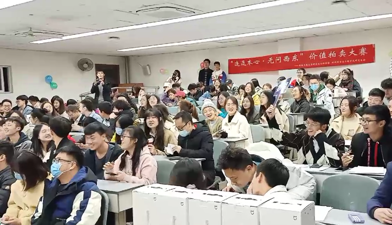 2020年11月22日19:30,“追逐本心,无问西东”价值拍卖大赛在九里校区逸夫楼4418教室拉开帷幕。本次活动由共青团午夜av