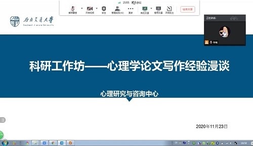 本科生开设的科研工作坊第三场讲座在腾讯会议准时开展,本次讲座以“心理学论文写作经验漫谈”为主题,心理午夜av