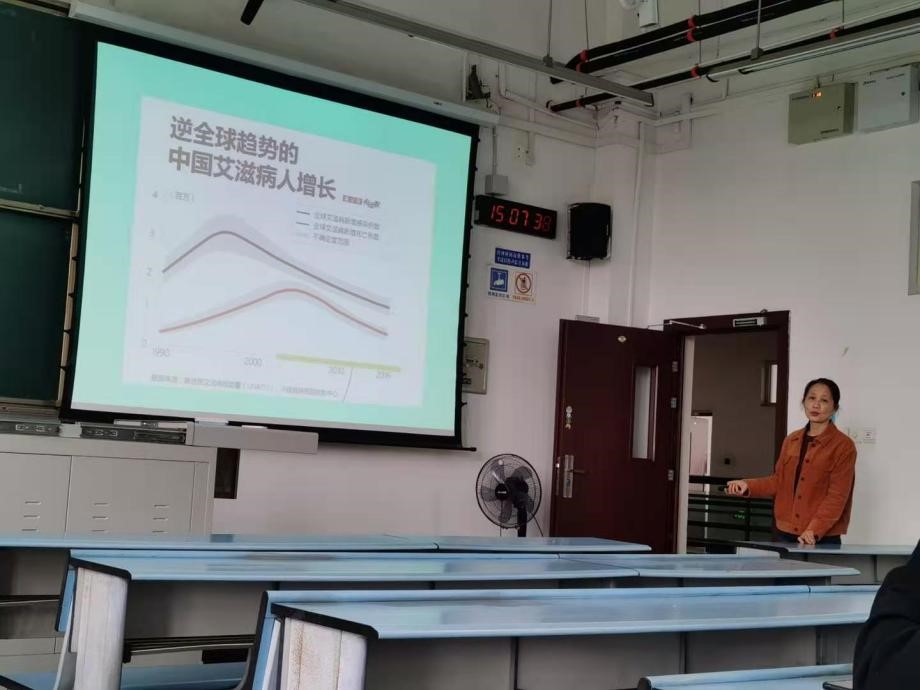 在讲座中,张涛老师从艾滋病的概念、传播途径、防护措施、人文关怀、国内和全球的艾滋病流行概况以及对社会的严重危害性等几个方面进行了宣传讲解。同学们不仅学习了有关的知识,同时也增强了“预防艾滋病,你我同参与”的社会责任感。