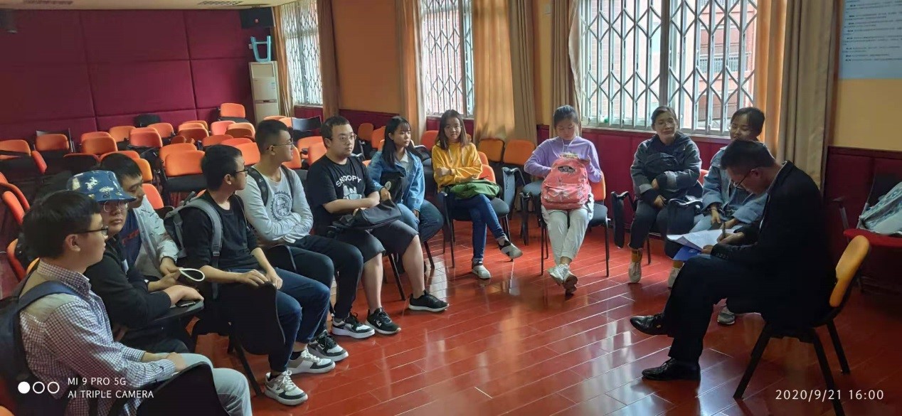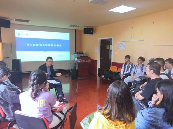 副书记兼学生工作组组长柯小君老师为同学们讲解当下就业形势,17级本科生中有就业意向的同学准时参加本次座谈会。