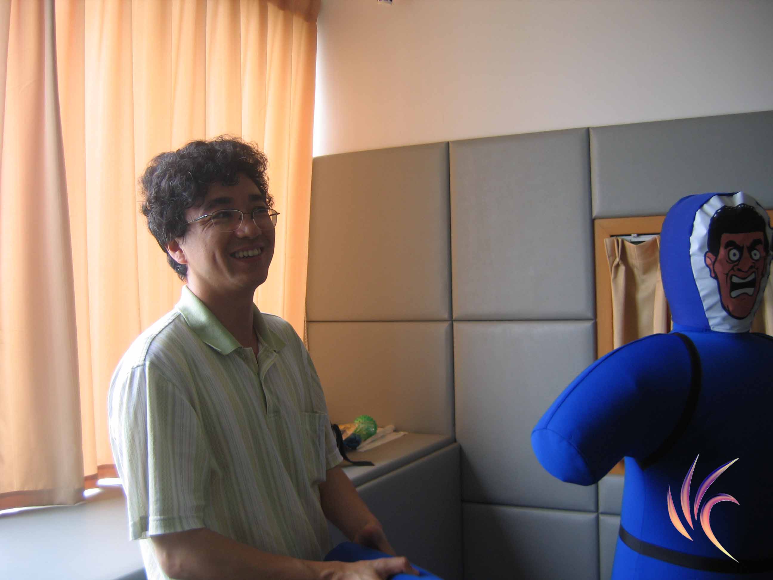 在宁主任的推荐下,张副书记一行又来到5227实验室,戴上特制的眼镜,亲自感受了一回“虚拟现实”治疗法。记者也有幸一试,感觉确实很奇妙。宁主任介绍说,利用“虚拟现实”疗法,对于治疗恐惧症、焦虑症、睡眠障碍等会有很好的疗效,下学期该实验室将向学生开放。