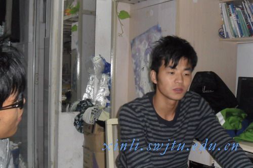 来到学长的寝室, 时间已是下午六点 。正好遇到学长背着书包从图书馆回来, 看他一身运动休闲打扮 ,活力十足。 心想: 这次采访一定不乏乐趣。
