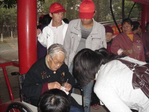 25号清晨,人文学院青年志愿者协会40余志愿者顶着淅淅沥沥的小雨来到郫县敬老院,展开了“志愿暖重阳,温情送孤老”的活动。活动的目的是为了给敬老院的老人们送去关怀和温暖,让他们感受到人间温情;展示当代大学生服务社会的风采,并通过这的活动,使青年志愿者增长劳动和服务经验,提高各项义务劳动技能。