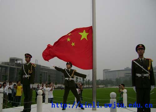 2009年10月1日,是我们伟大的祖国60岁生日,全国各地欢天喜地庆祝节日。就在这天,交大犀浦校区早上8点整,由国防生组成的国旗班,在图书馆东大门前举行了隆重的升国旗仪式,受到广大师生的一致好评。