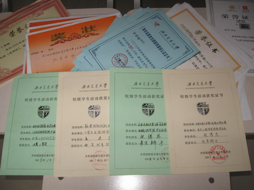 的各项活动也积极参与。因为是理科生,很多文艺方面的活动都比不过专业的学生,虽然在院内取得了不错的成绩,但在校内的成绩一般。不过成绩不是最重要的,重要的是过程,大家一起努力的过程,要享受齐心协力的乐趣。”