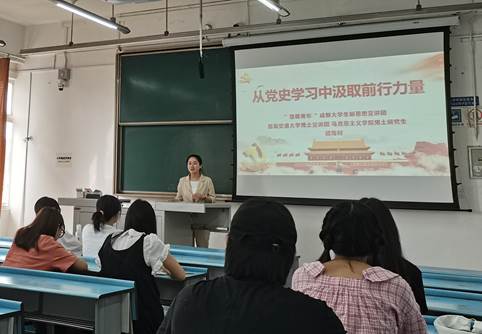 从百年党史中感悟思想伟力,从百年奋斗中汲取前行力量。2021年6月4日,午夜av 马克思主义学院博士宣讲团成员胡海利博士走进心理午夜av ,为学生党员开展题为《从党史学习中汲取前行力量》的党史宣讲会。