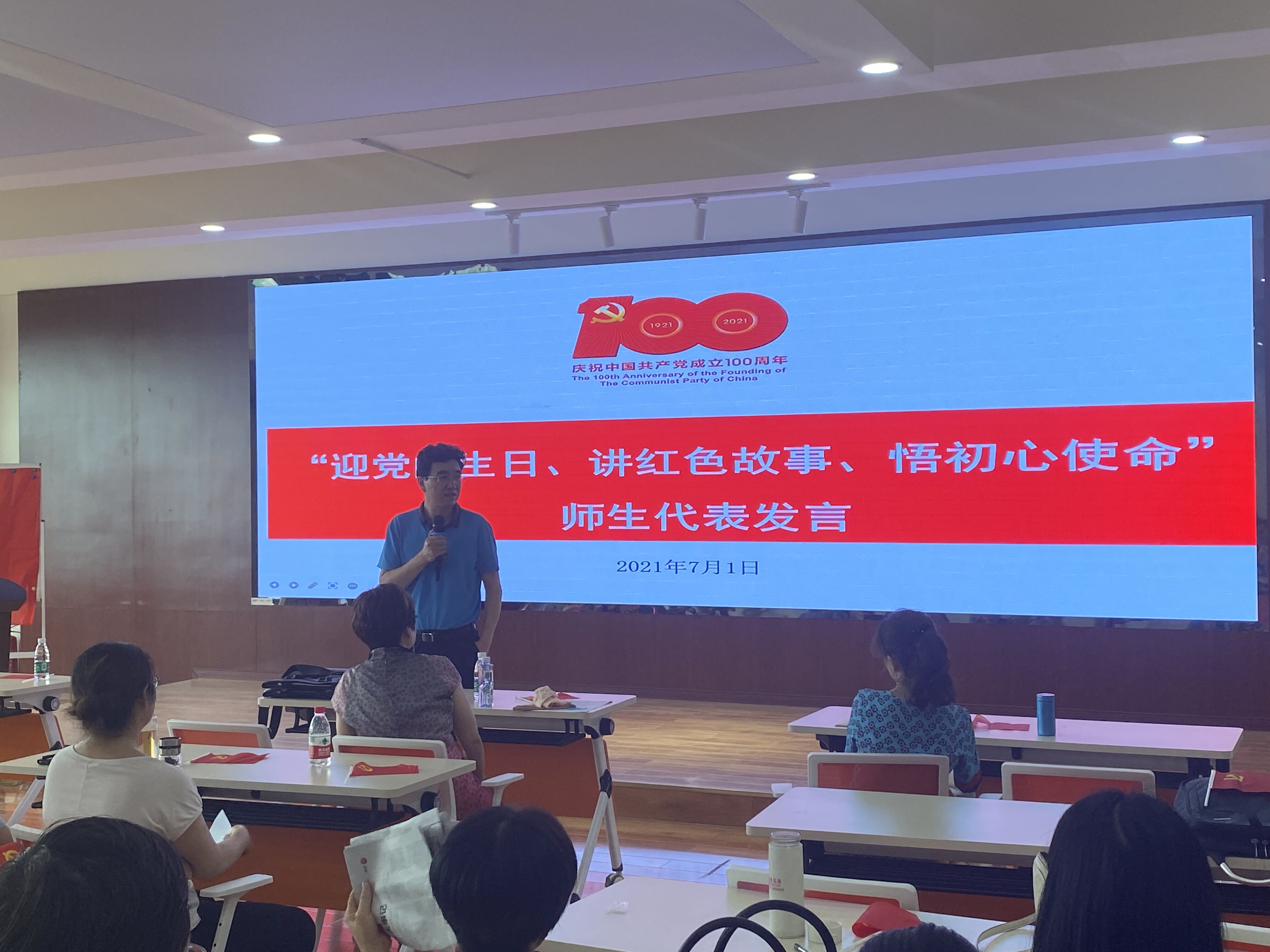 学生党员代表张海乐讲述了自己的成长过程中受到的国家政策的帮扶,看着家乡日新月异的变化,深刻体会到祖国的强大,并向中国共产党表达了自己深深的感谢与祝愿。