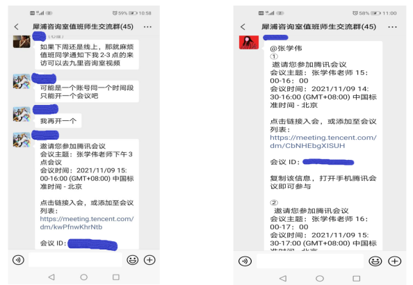 咨询部及时启动疫情应急预案,迅速调整工作模式。从10月29日,开始启用线上咨询,咨询老师和来访者通过腾讯会议进行咨询。通过这种方式,可以让有需要心理帮助的同学能够及时进行咨询。这期间,根据午夜av