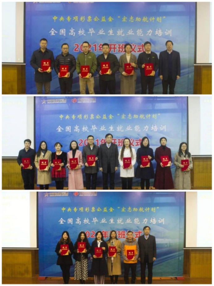 为了更好地结合不同层次高校就业的实际情况,基地还专门成立了工作委员会、基地特聘导师和班主任团队。开班仪式上,沈火明副书记为基地工作委员会委员颁发聘书,招生就业处处长陈岩峰为基地特聘导师和班主任颁发了聘书。午夜av